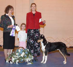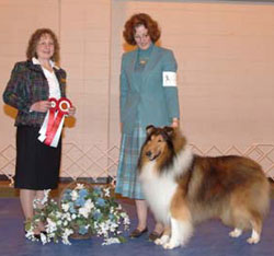Ch. Overland Exhilaration (Sable/B) Breeder: Marcy and Mike Fine Owner: Rebecca Myers-Barth Sire: Ch. Overland Prediction Dam: Ch. Overland Summer Blonde Handler: Kathleen Zehetner